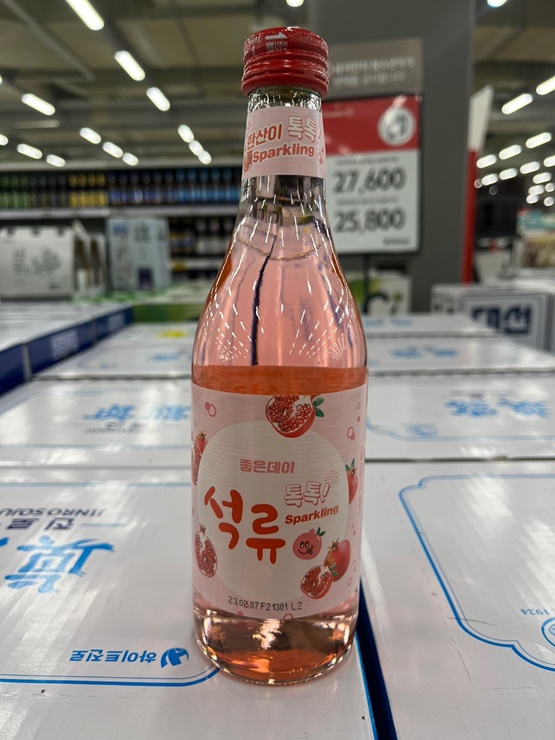 굿데이 베스트 셀러 석류입니다. 과일소주가 출시된 초기에는 석류음료가 큰 인기를 끌었다. 그 때 만들어진 제품이지만 지금까지 오랫동안 사랑받고 있는 제품입니다.