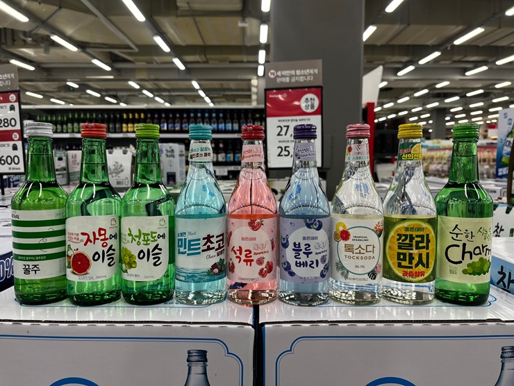 처음처럼 허니와인 / 자몽에 맺힌 이슬 / 청포도에 맺힌 이슬 / 헬로민트초콜릿 / 헬로석류 / 헬로블루베리 / 헬로깔라만시 / 금복주 상큼하고 달콤하고 순한