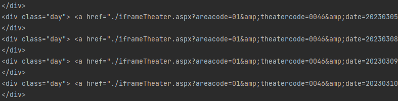 날짜는 찾기가 매우 쉬운 것 같습니다. 모두 div class=”day”에 연결되어 있습니다. 가져온 후 href를 가져와 그대로 사용하거나 날짜를 별도로 가져올 수 있습니다.