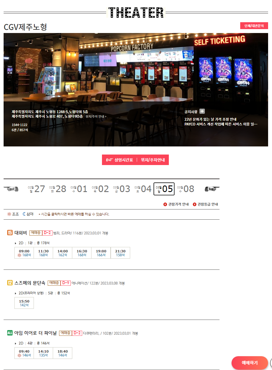 자료가 너무 많아서 잘려서 마지막으로 남은 CGV제주노형만 보여드리겠습니다.