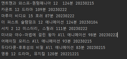 모든 영화 정보도 구문 분석하여 가져왔습니다. 이제 마지막 날짜 데이터를 가져옵니다.