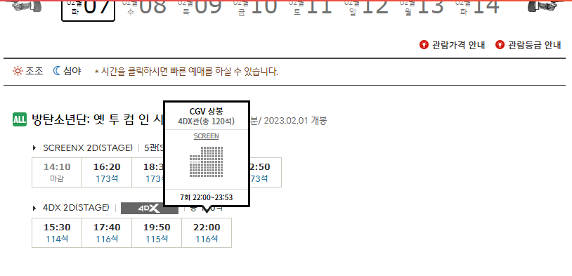 영화 상영시간표는 아래에서 확인하실 수 있습니다. 아무거나 클릭해 봅시다.