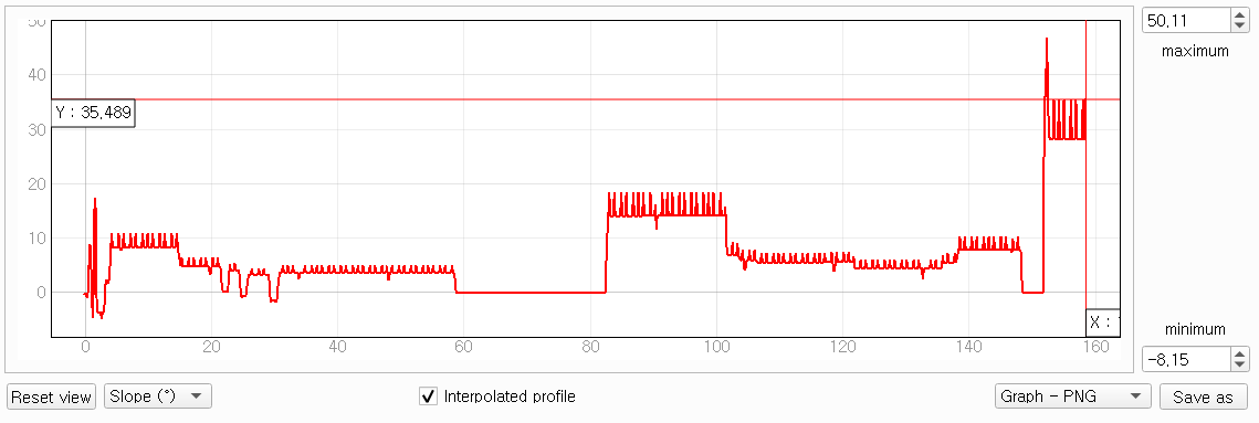 아래와 같이 선을 이어가면 여러 곳의 높이를 분석할 수 있습니다.