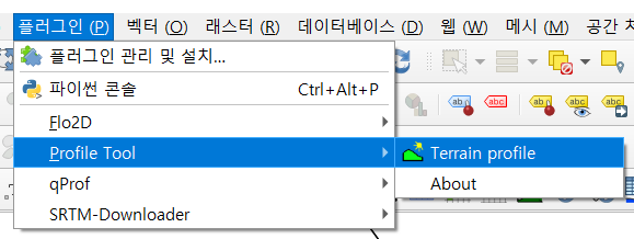 2. 플러그인 > 프로필 도구 > 지형 프로필을 선택합니다.